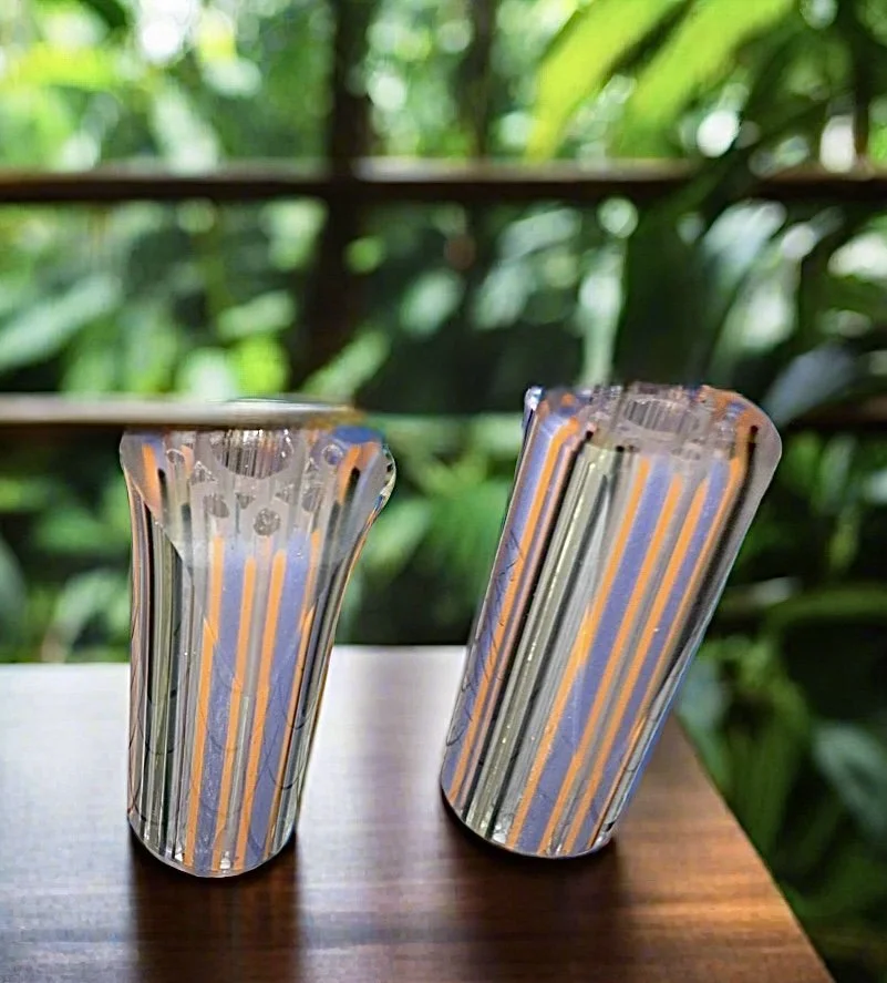This tip has no sales pitch, Just tried and true cutting edge innovation, engineering, craftsmanship and root of it all sacred geometry. Guaranteed to deliver the smoothest least restrictive experience possible. Each and every one of These Flower of Life Tips are Meticulously Cold worked on the same machines diamonds are faceted on beveling the edges making these one the most Paper and Lip friendly glass crutches you have yet to experience. Treating you With a Single main center purge chamber for the surrounding vents to dump into when increased air flow is wanted. These 19 Air vents bring the entire structure together into the Flower Of Life Grid. We are Creating new standard of Luxury Home Goods more so a True standard in World class, luxury, designer glass. This is a very Limited run color way is only done one time with 68 of these ever made from Beginning August 2024 collection all Tips will be hand signed and graded.